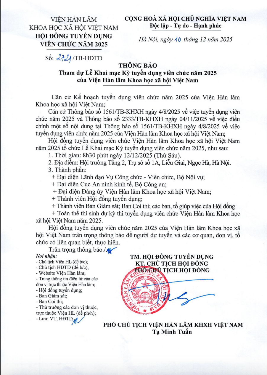 Tuyển dụng viên chức năm 2025 của Viện Hàn lâm Khoa học xã hội Việt Nam